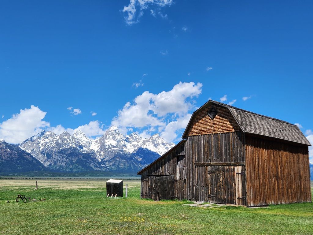 No Grand Teton visit is complete without a stop at Mormon Row, which is a row of homesteads from the early 1920s in the flat prairie east of the Tetons. The park has been repairing some of the homes, and the old barns with the mountains in the background are always iconic.