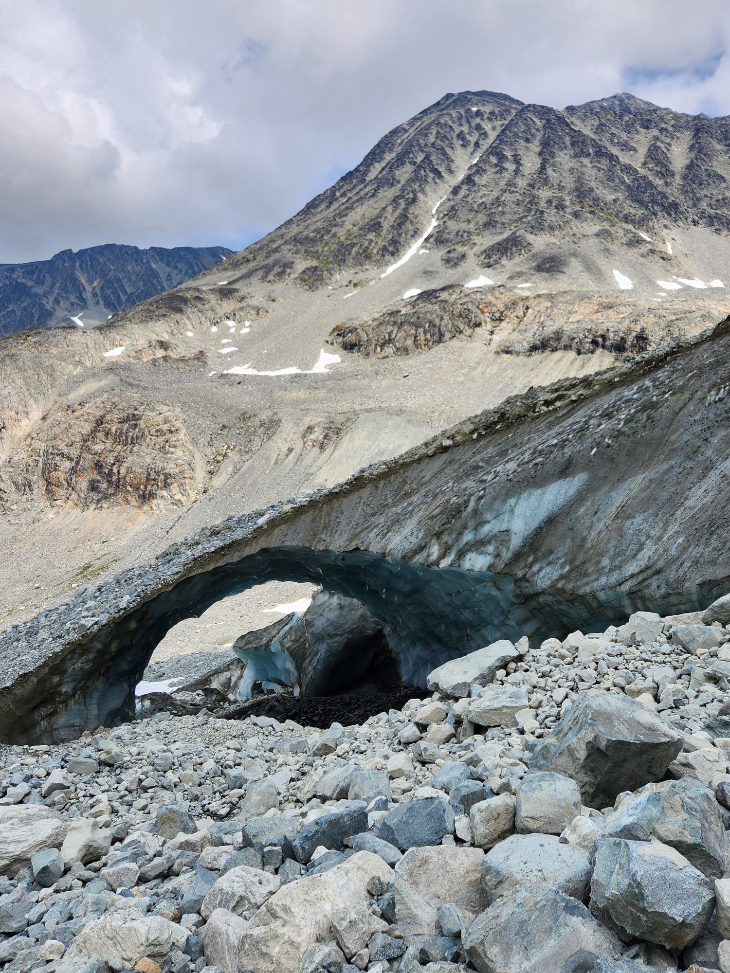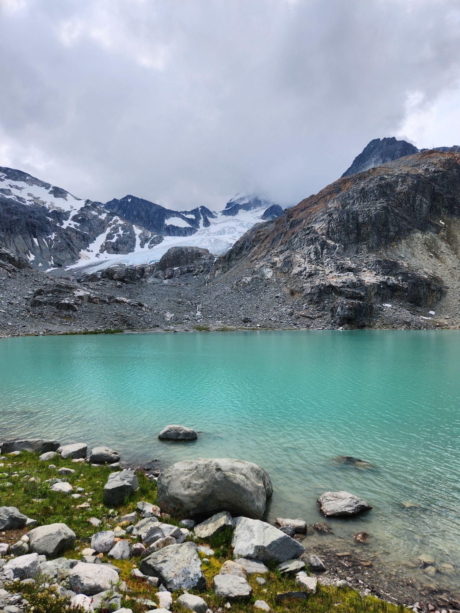 We were not aware that the most popular trails in the Whistler area require parking reservations, so this limited our options for day 2. Despite being a little tired, we decided to do the Wedgemont lake trail. This was aggressively uphill – more of a rock and root scramble than trail – but absolutely stunning. We went past the first lake to a second higher lake and then up to a glacier and an ice tunnel. Rocks were steadily falling due to the melting ice, prompting us to head back down.